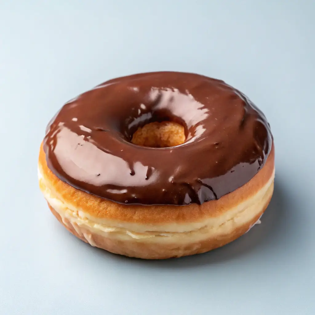 A delightful mochi donut featuring a sweet strawberry flavor combined with rich chocolate accents. The donut is glazed with a shiny pink strawberry icing and drizzled with dark chocolate. Its chewy texture and fruity-sweet taste make it a popular choice among dessert lovers. Perfect for a fruity, chocolaty indulgence.