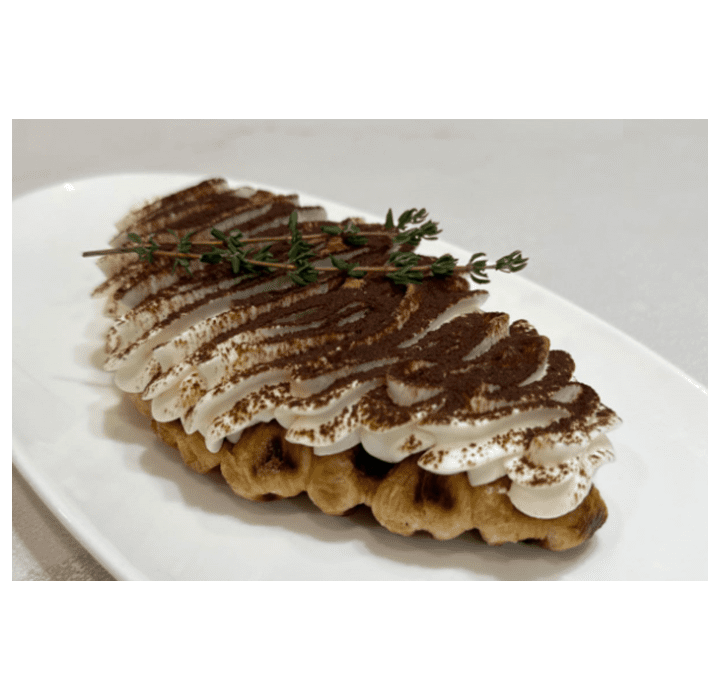 A true indulgence — smooth chocolate sauce drizzled over a golden croffle, finished with whipped yogurt cream. Deep, rich, and irresistibly satisfying.