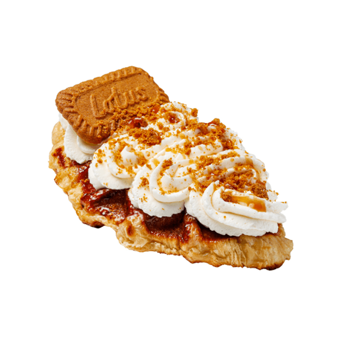 Featuring the deep caramel notes of Lotus Biscoff cookies, this croffle blends smooth whipped cream with crunchy biscuit crumble for a warm, spiced sweetness in every bite.